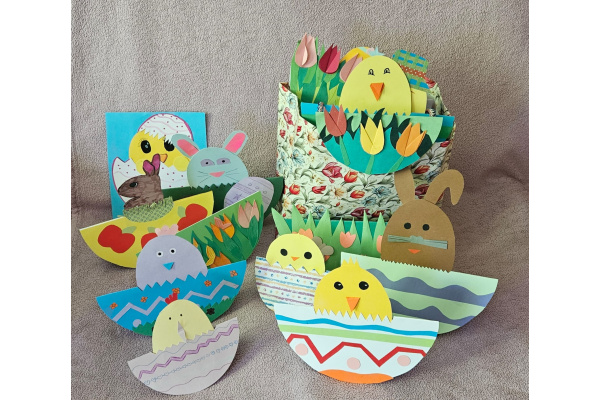 Uczniowie naszej szkoły podczas lekcji techniki własnoręcznie wykonali prace wiosenno - wielkanocne.