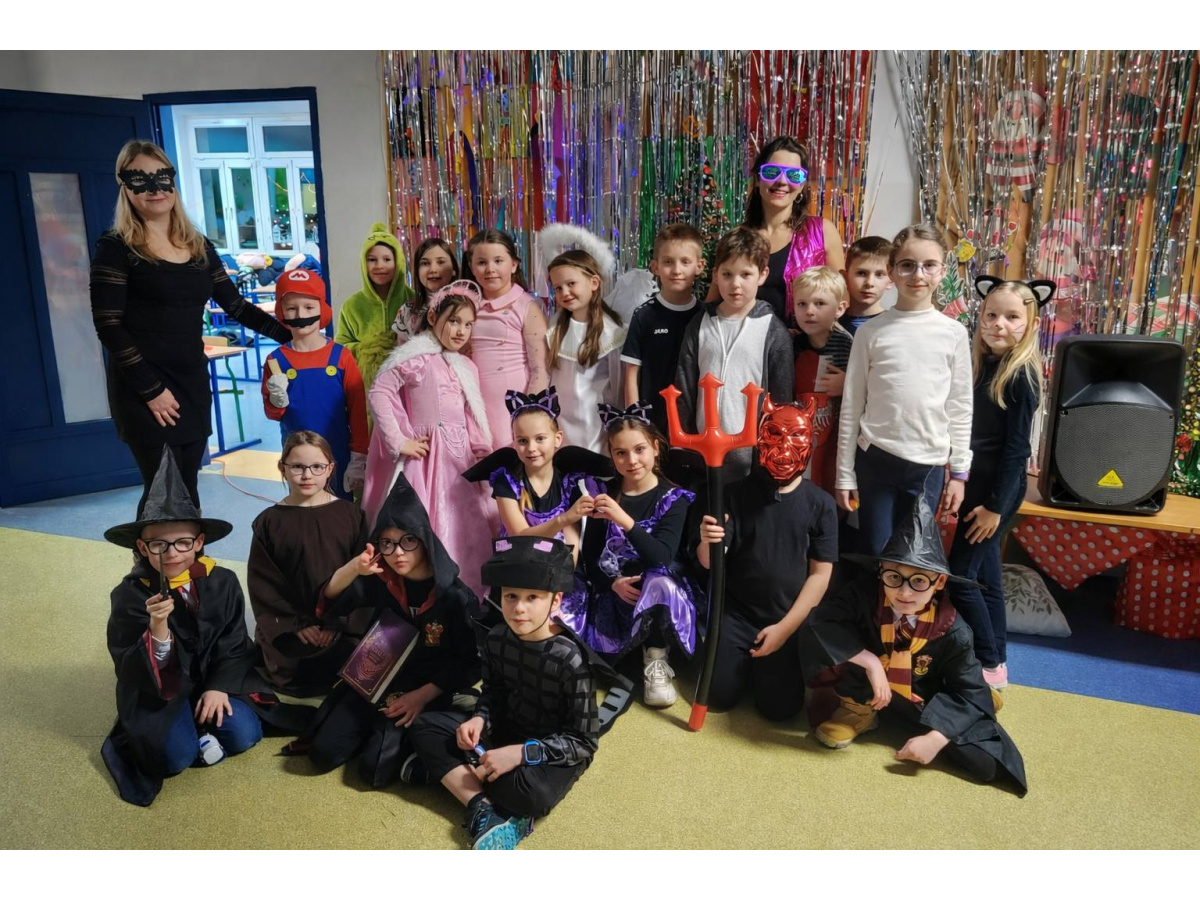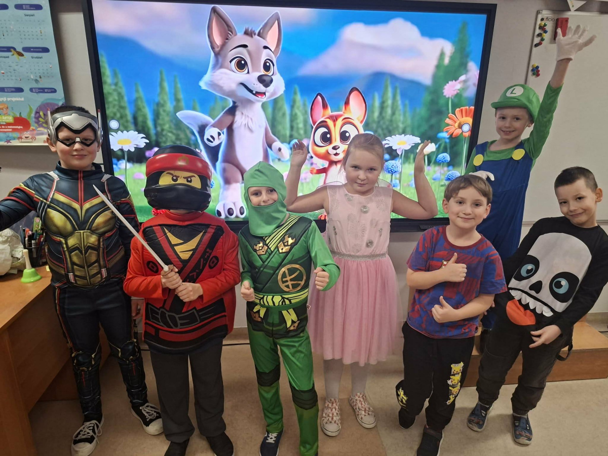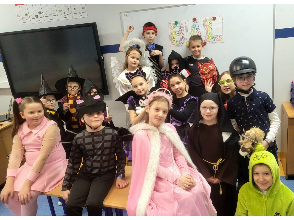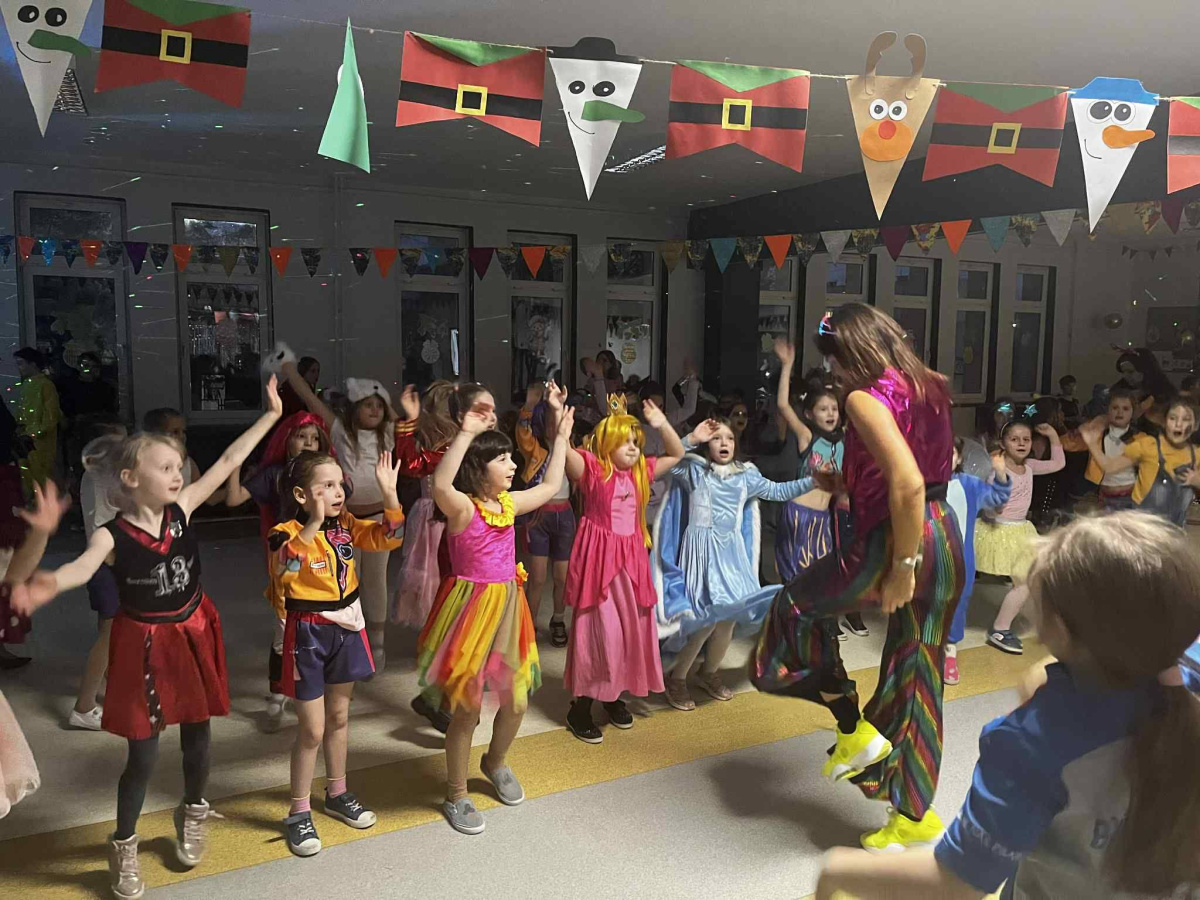 Kolorowe stroje, uśmiechy od ucha do ucha i mnóstwo radości – tak wyglądał nasz wyjątkowy bal karnawałowy! Szkoła wypełniła się księżniczkami, superbohaterami, zwierzątkami i bajkowymi postaciami, które wspólnie tańczyły, bawiły się i brały udział w karnawałowych zabawach.