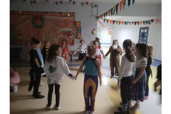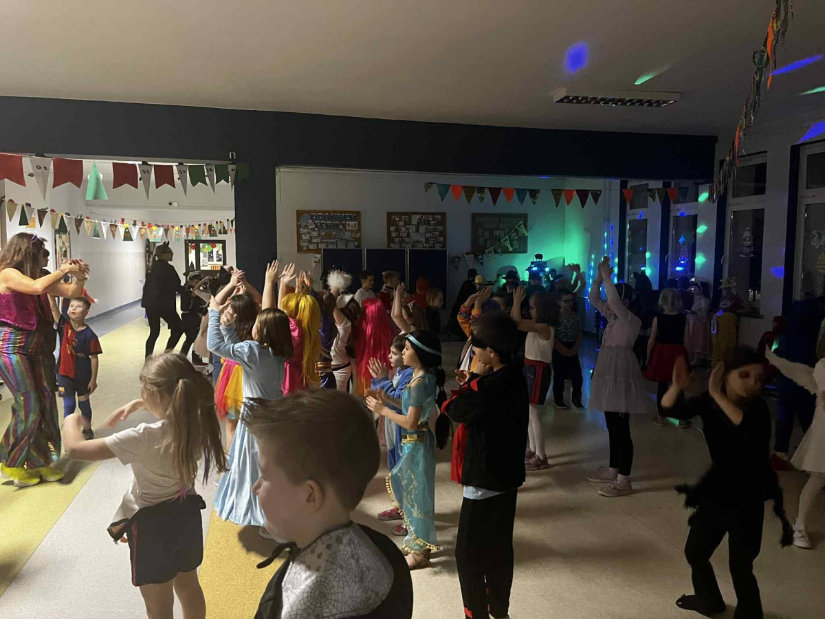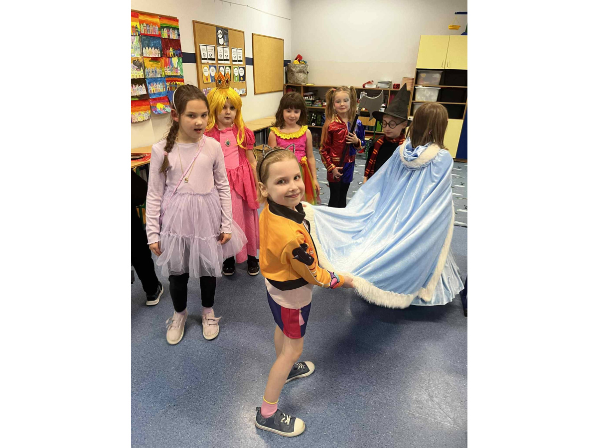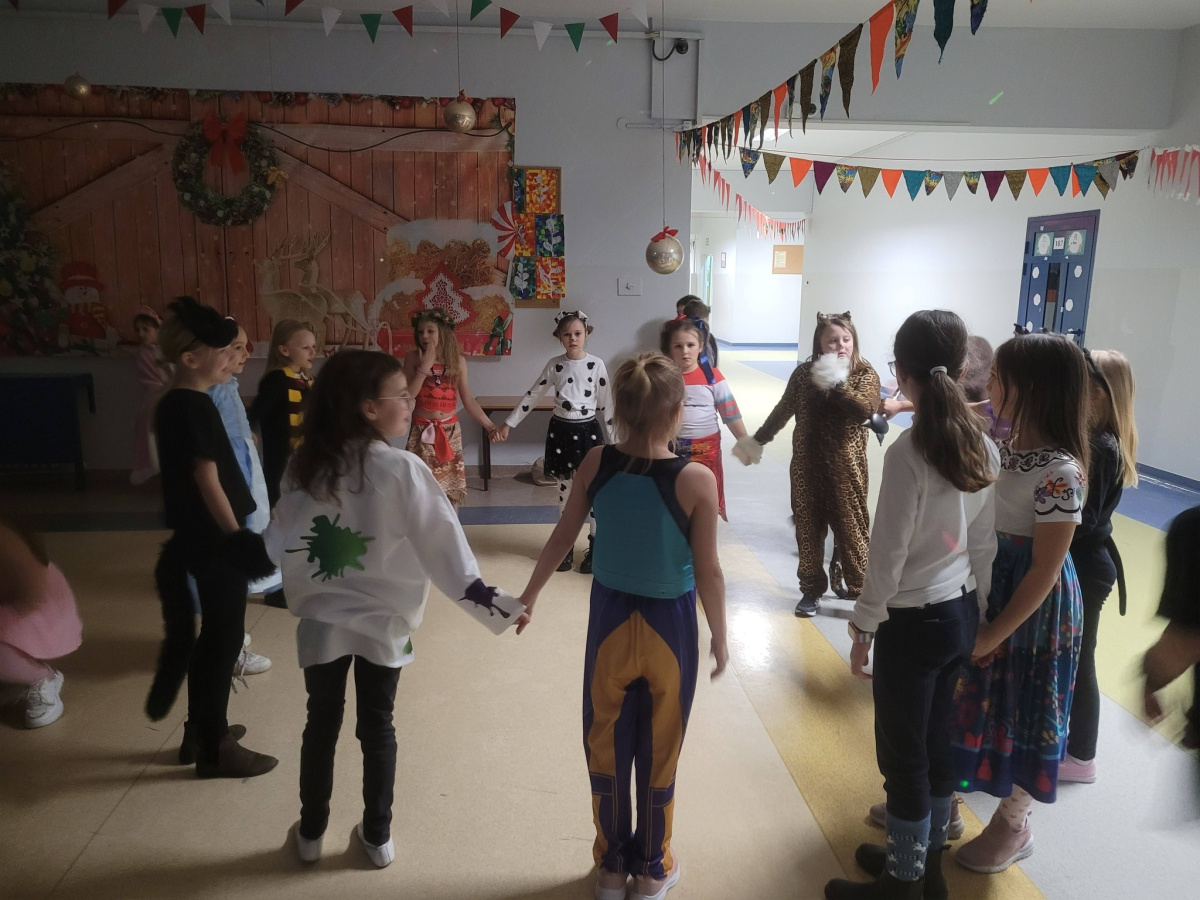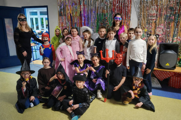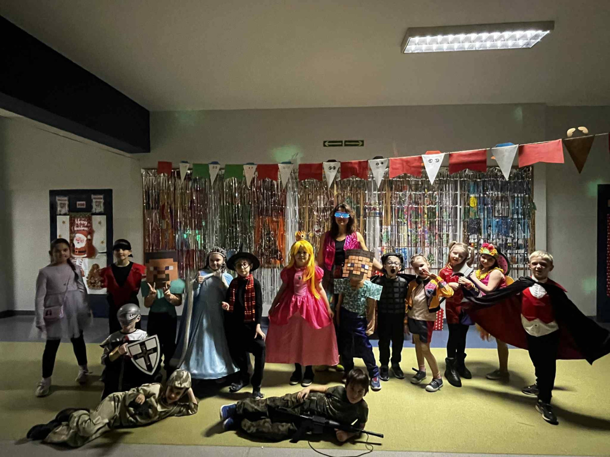 Kolorowe stroje, uśmiechy od ucha do ucha i mnóstwo radości – tak wyglądał nasz wyjątkowy bal karnawałowy! Szkoła wypełniła się księżniczkami, superbohaterami, zwierzątkami i bajkowymi postaciami, które wspólnie tańczyły, bawiły się i brały udział w karnawałowych zabawach.
