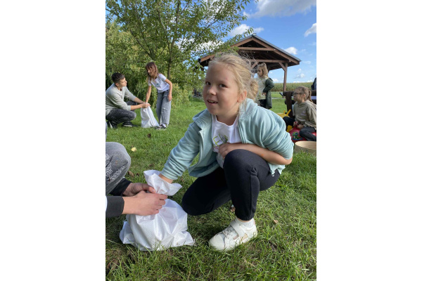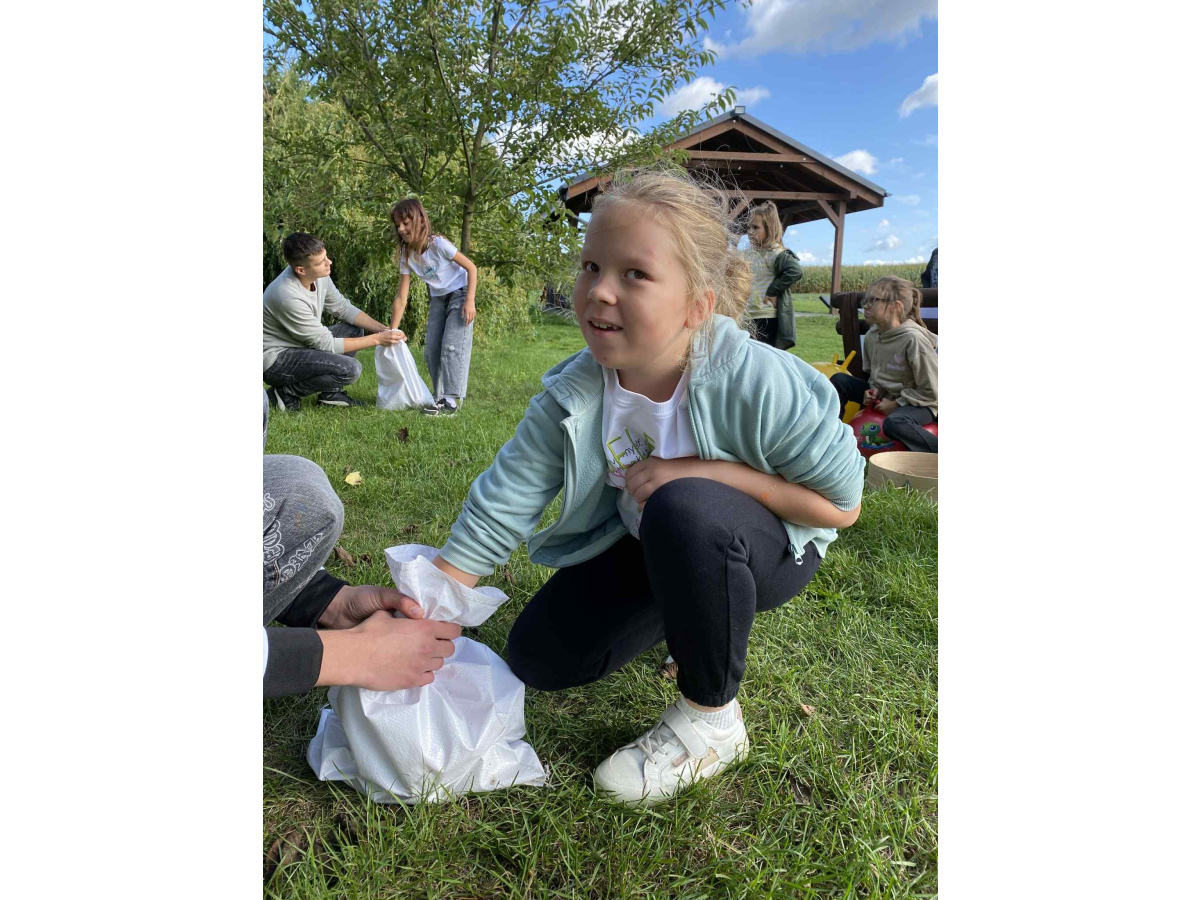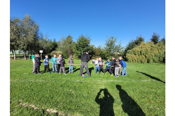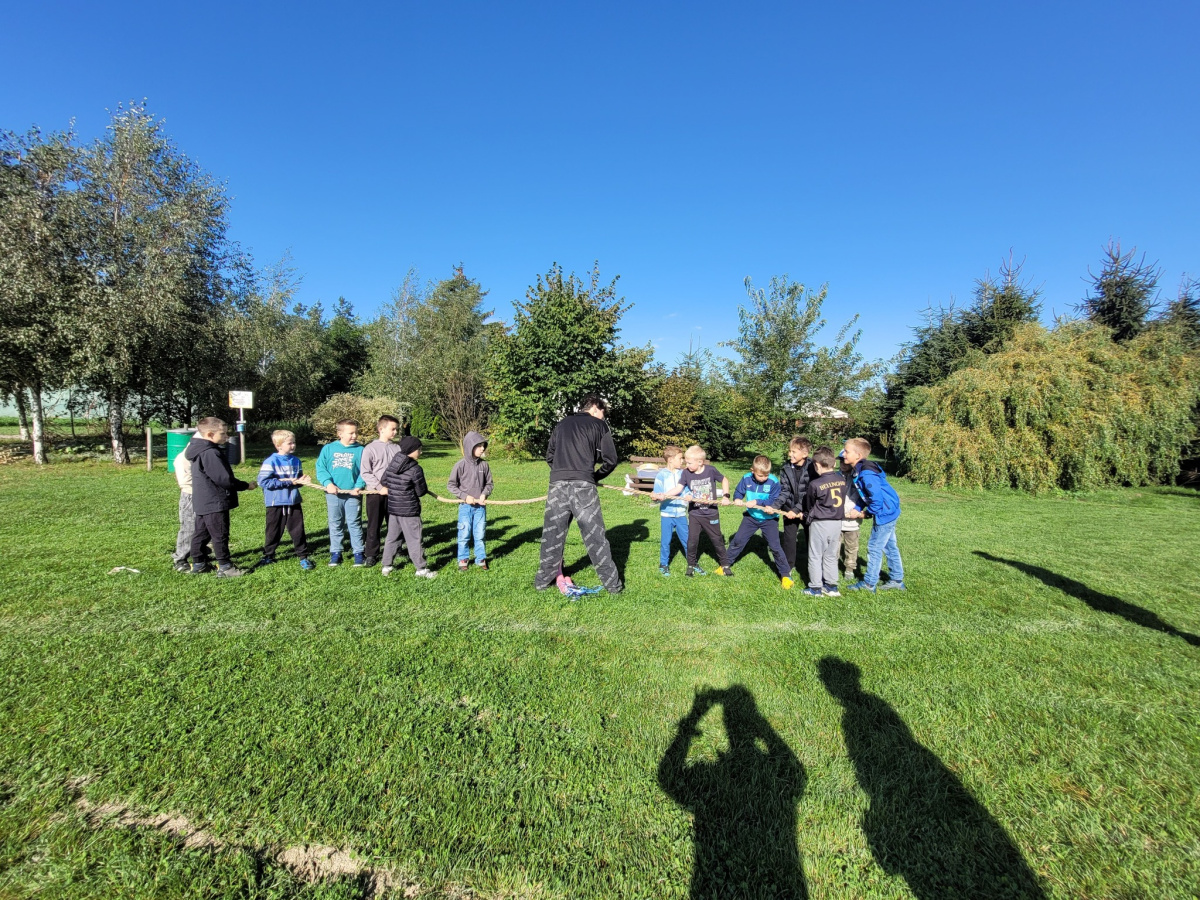 Nie zabrakło również czasu na aktywność ruchową – uczniowie świetnie bawili się, korzystając z obszernego terenu i biorąc udział w zabawach sportowych.