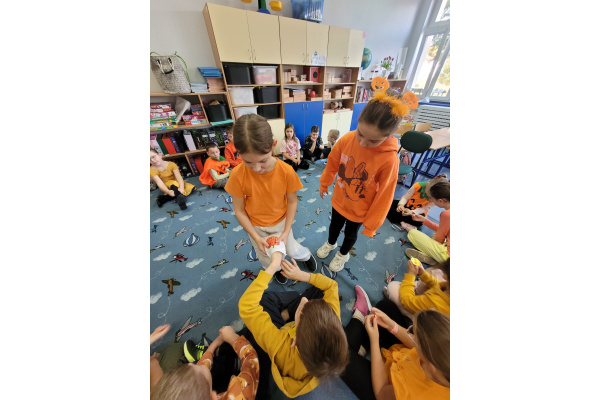 Dziś uczniowie klasy 2D obchodzili radosne Święto Dyni! Na początku dzieci kolorowo ozdobiły swoje dynie – powstały prawdziwe arcydzieła z uśmiechniętymi buźkami. Następnie odbyła się krótka sesja zdjęciowa, a po niej pyszny poczęstunek przygotowany przez rodziców – nie zabrakło dyniowych babeczek i innych smakołyków! Na zakończenie uczniowie wykonali lapbook o dyni, poznając mnóstwo ciekawostek o tym jesiennym warzywie.