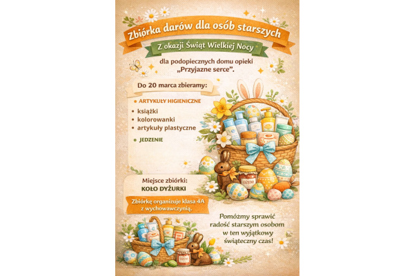 Zbiórka darów dla podopiecznych domu opieki "Przyjazne serce". Szczegóły na plakacie.