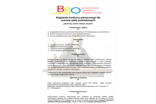 Zapraszamy uczniów szkół podstawowych do udziału w konkursie plastycznym "Naukowcy oczami młodych artystów". Regulamin i szczegółowe informacje znajdują się na załączonym plakacie.
