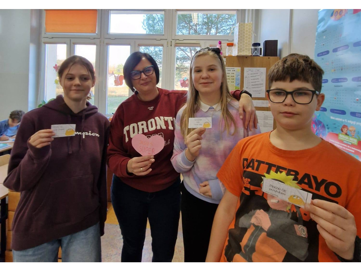 Nauczyciele współorganizujący z dumą poprowadzili Tydzień Tolerancji i Życzliwości! Uczniowie klas 1–8 stworzyli wyjątkowy łańcuch życzliwości, który teraz przechodzi przez całą szkołę i symbolicznie łączy wszystkie klasy. Powstały też „kamienie życzliwości” — pięknie pomalowane i pełne miłych słów. Ułożone przed szkołą, witają każdego pozytywnym przesłaniem i przypominają o sile dobrych gestów. To był tydzień pełen uśmiechu, wsparcia i wzajemnego szacunku!