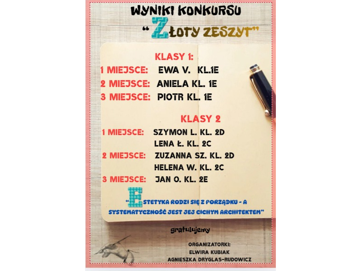 Wyniki konkursu "Złoty zeszyt" - w załączniku.