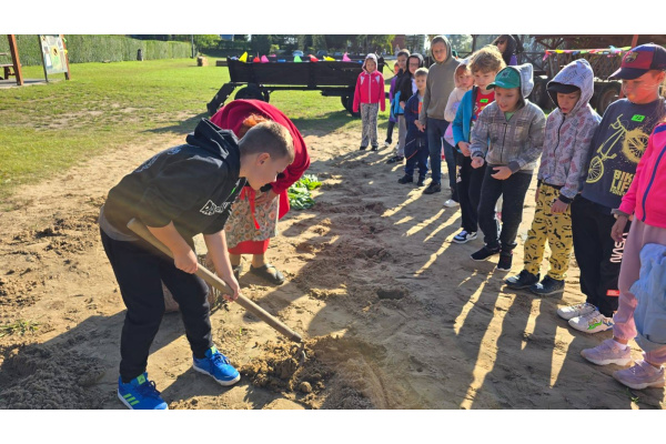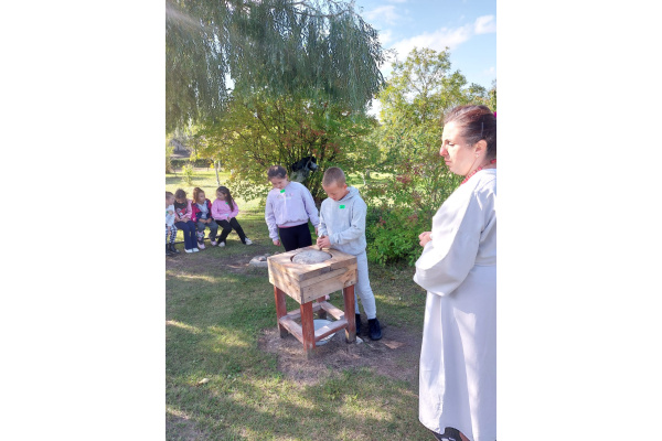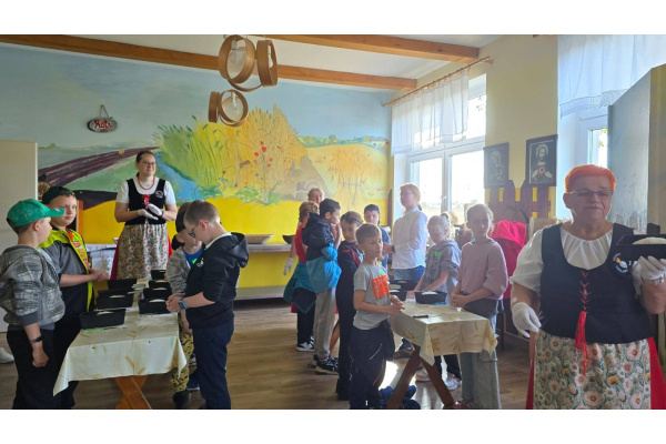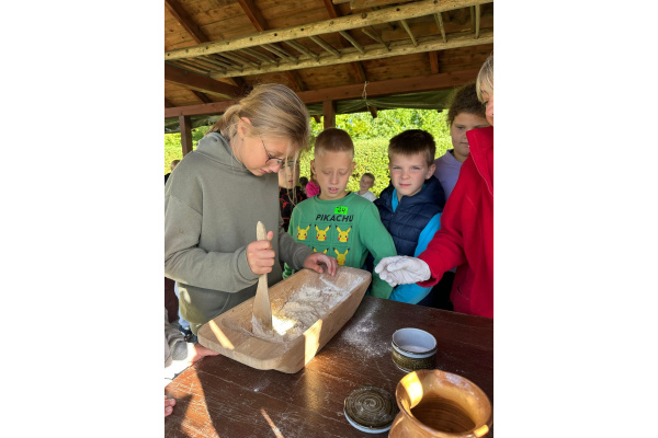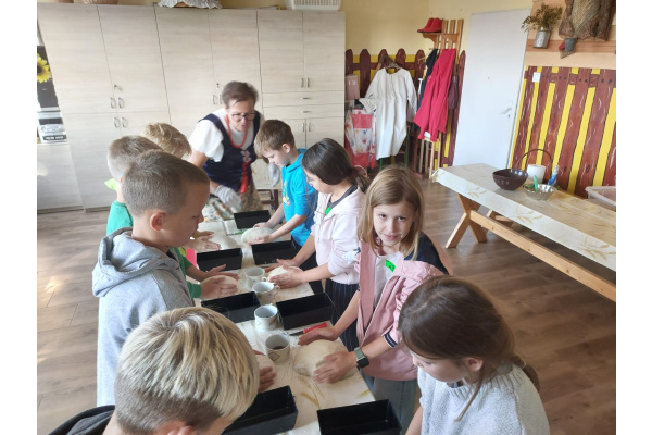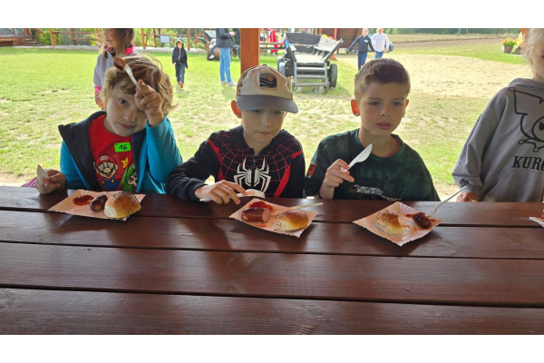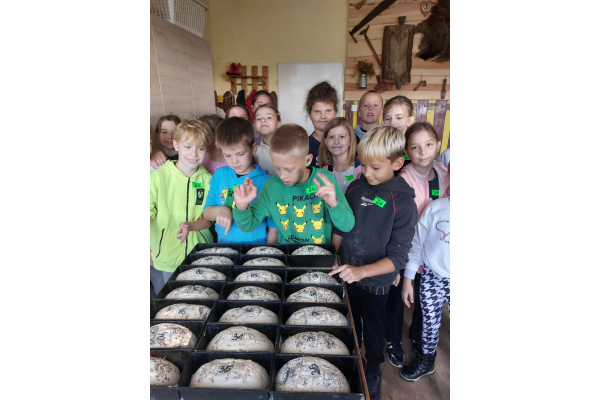 16 września dzieci z klasy 3a i 3c wybrały się do "Wioski chlebowej" w Janiej Górze. Zapoznały się z legendą wioski chlebowej, szukały produktów potrzebnych do pieczenia chleba. Spotkały Gospodarzy, Strażnika: Soli, Ognia, Wody i Stracha. Podczas warsztatów pracowały przy wyrabianiu chleba. Poznały rodzaje zbóż i rośliny okopowe. Jadły podpłomyki i kiełbaski z pieca chlebowego. Na koniec bawiły się na placu zabaw. Mali turyści wrócili do domów ze smacznym chlebem i w doskonałych humorach!